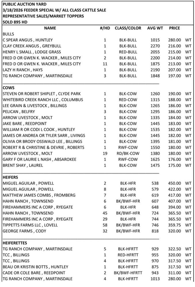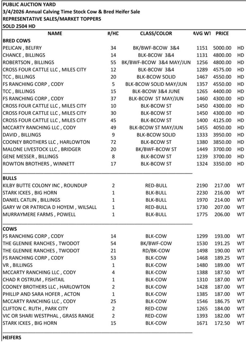 Cattle Sales